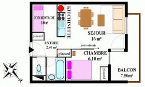 In Aussois, at the "La Combe II" residence, pleasant apartment for 5/6 people.Surface : 33m²
