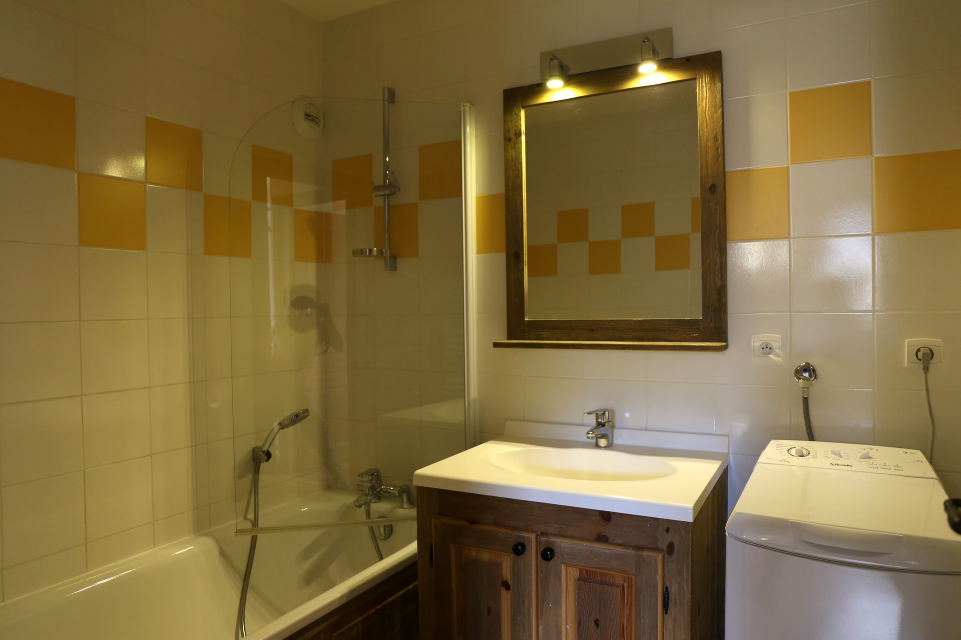 Bathroom: bathtub, sink, and washing machine. Separate toilet.