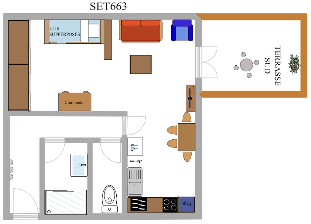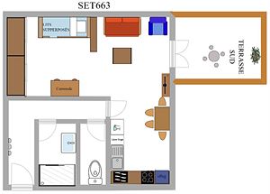 In Aussois, in the "Les Sétives" residence, this pleasant, fully renovated studio cabin sleeps 4.Surface area: 35 m²