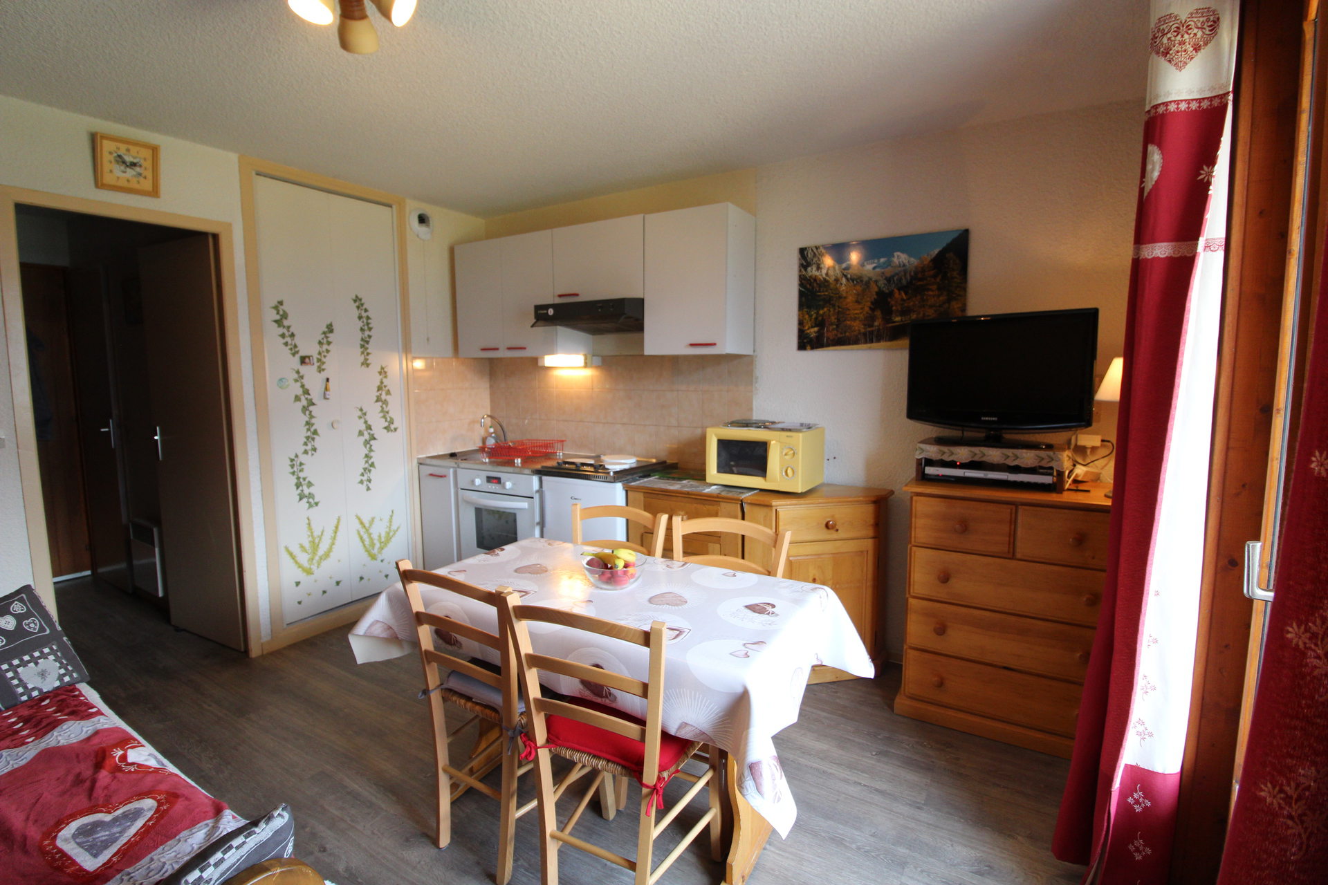 In Aussois, in the "Genevrey" residence, a lovely studio/cabin close to the slopes (200m) for 2/3 people.Surface area: 21 m²