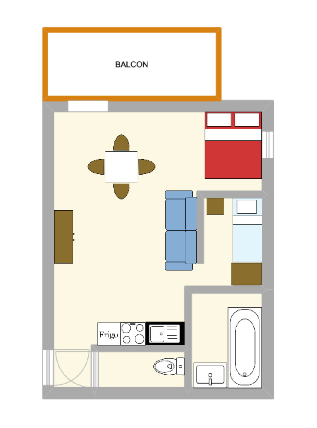 Studio alcove | double bed : 1 | 4 people | Floor: 2