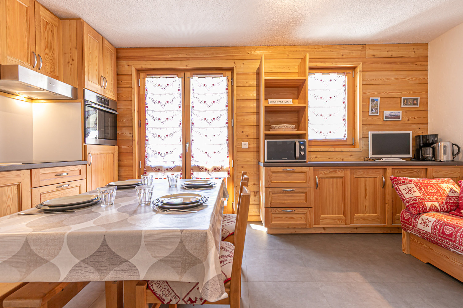 Fully equipped kitchen: 3-burner induction hob, dishwasher, microwave, oven, refrigerator.